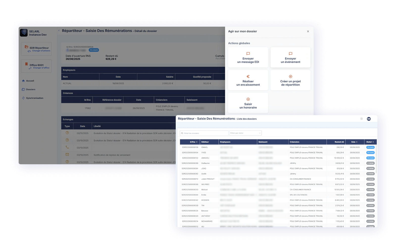 L’ensemble des étapes de la répartition des saisies des rémunérations est synchronisé automatiquement, vous garantissant conformité et exactitude à chaque opération.